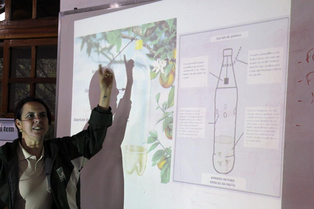 A engenheira agrônoma Sandra Tavares ensinou também a preparar armadilhas para a mosca-da-fruta e a fazer a calda bordalesa, um preparado que serve como uma espécie de desinfetante para as plantas, facilitando a cicatrização e impedindo que os ferimentos de cortes sirvam de entrada para microrganismos nocivos. “O astral foi muito bom aqui em Sapiranga”, comentou a instrutora do Senar, sobre o curso no Cemeam. Segundo ela, o principal objetivo do curso é evitar principalmente o corte exagerado das plantas. “Pode-se até ter poda de menos, mas nunca demais”, resumiu. Nesse interim, ela falou sobre podas de formação, frutíferas, de limpeza e de rejuvenescimento das plantas.